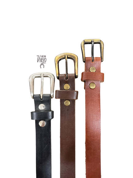 CINTO DE SUELA CON HEBILLA DE ZAMAC O BRONCE.